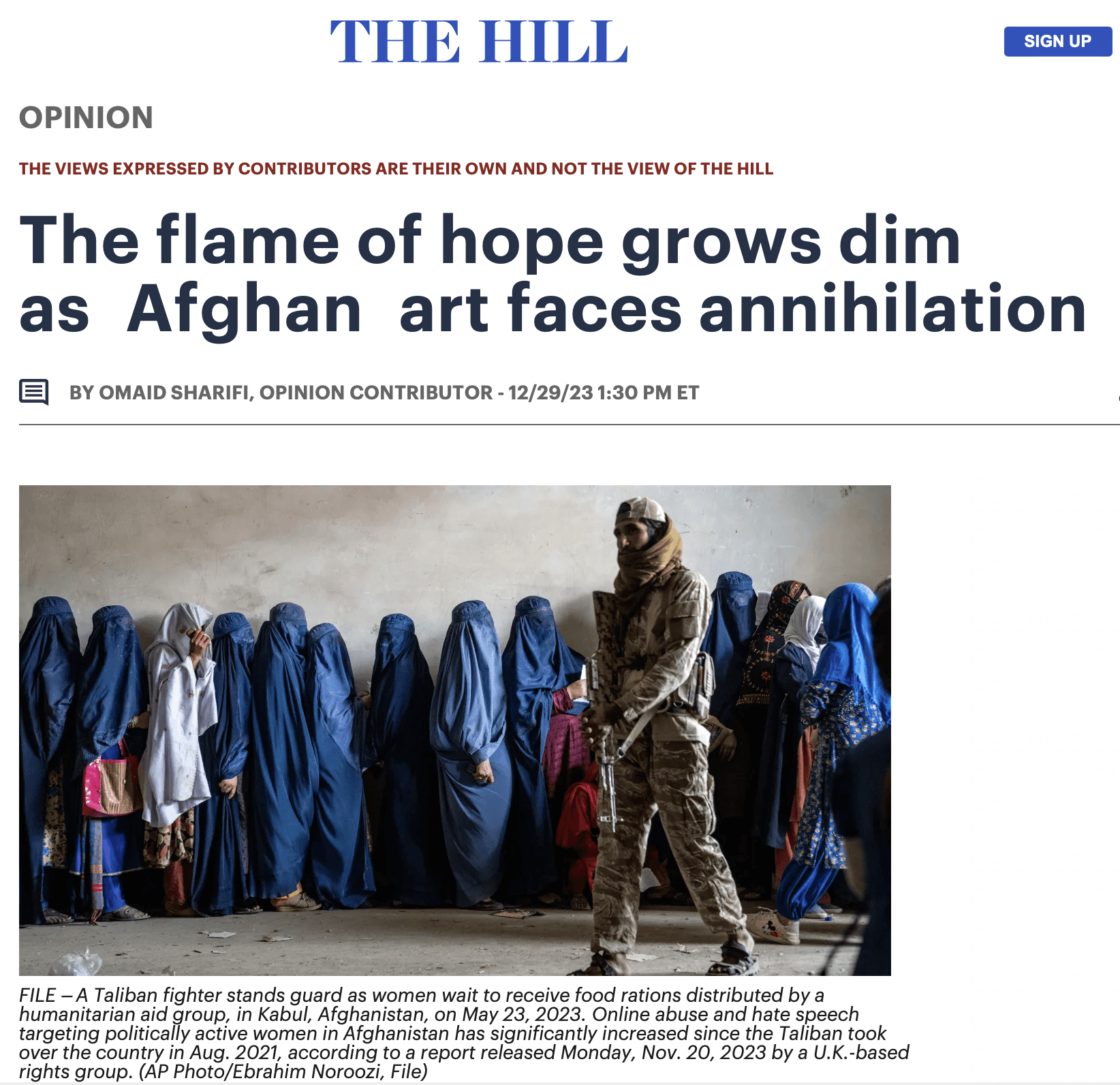 The Flame of Hope Grows Dim as Afghan Art Faces Annihilation published in The Hill, framing the destruction of artistic expression as both a cultural and geopolitical crisis.