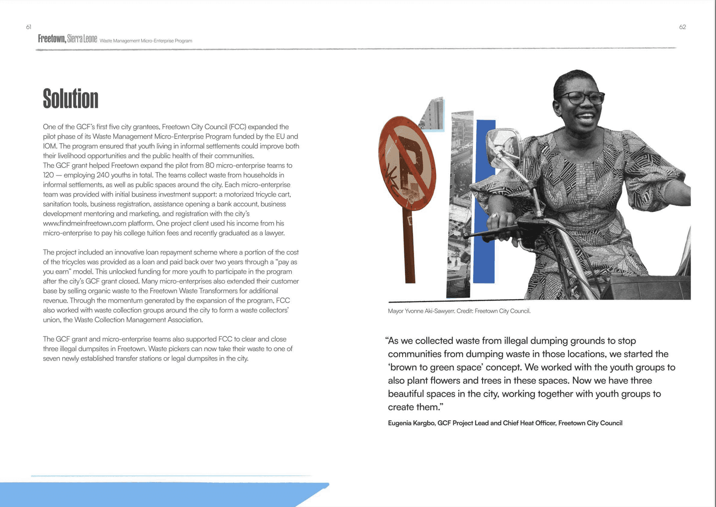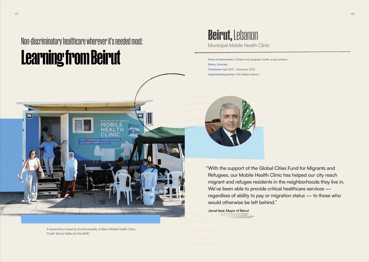 We partnered with the Mayors Migration Council (MMC) to research, write, edit and design the Global Cities Fund for Migrants and Refugees Progress Report, a flagship publication documenting the Fund’s early impact and highlighting how city-led action delivers inclusive solutions for migrant and displaced communities.